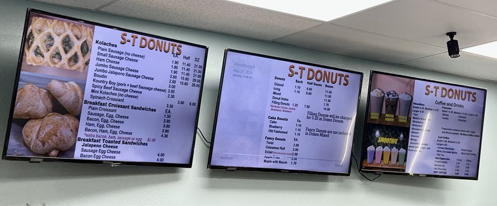 ST Donuts is a popular donut shop located in San Antonio, Texas, known for its delicious and freshly made donuts. The menu includes a variety of options such as cake donuts, regular donuts, and fancy donuts like chocolate eclairs and apple fritters. Customers rave about the quality of the donuts, with many praising the freshness and flavor. The bavarian filled donuts are a standout, not too sweet but still reminiscent of home. Beyond just donuts, ST Donuts also offers savory options like spinach croissants and kolaches, all made with care and attention to detail. The staff at ST Donuts is friendly and efficient, making the overall experience enjoyable for customers. Whether you're a donut lover or looking for a tasty breakfast treat, ST Donuts is definitely worth a visit.